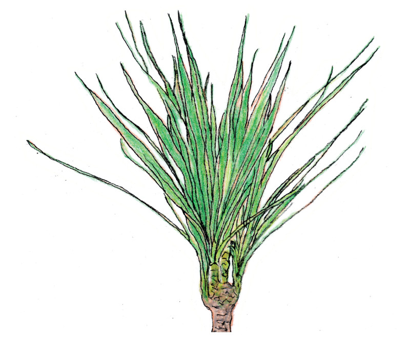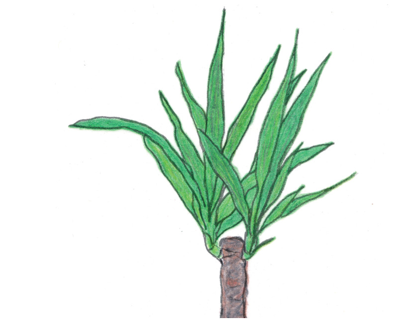 Die Gattung der Yucca zählt rund 30 verschiedene Arten stammbildender oder stammloser Pflanzen mit schwertförmigen Blättern, die in einer losen Rosette angeordnet sind. Die in Zimmerkultur gehaltenen Arten haben Stämme mit brauner, rauer Oberfläche und mit buschigen, ledrigen Blättern. Im Fall der Yucca elephantipes sind die Blattränder cremeweiß gefärbt. Die Yucca gehört zu den langsam wachsenden, sehr unkomplizierten Zimmerpflanzen.