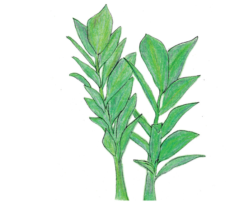 Zamioculcas zamiifolia (auch Glücksfeder oder Kartonpapier-Palme genannt) ist eine dekorative und pflegeleichte Zimmerpflanze, die ursprünglich aus dem südlichen Afrika stammt. Sie kommt zwar mit wenig Licht aus, steht aber auch gerne in hellen Räumen und muss nur mäßig gegossen werden. Die Pflanze beeindruckt durch dunkelgrüne, glänzende Blätter.